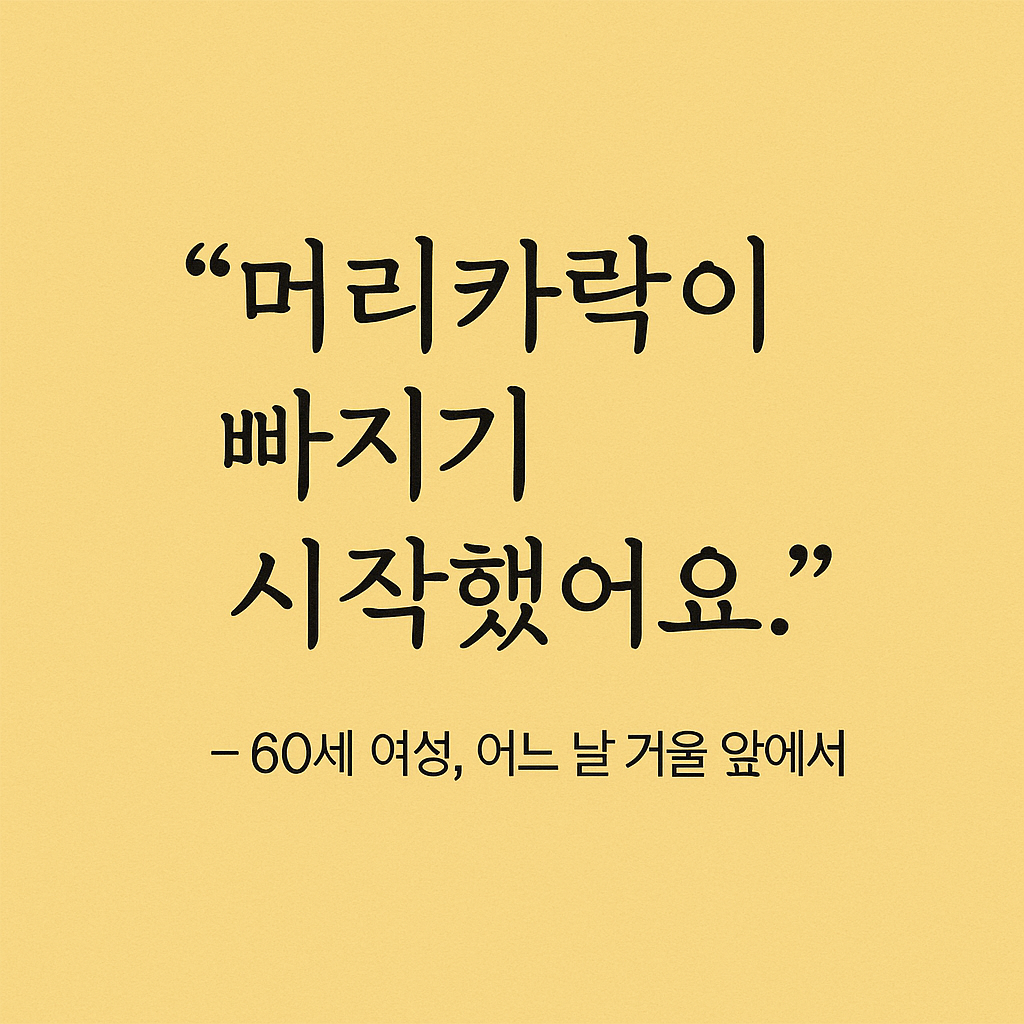 “머리 좀 빠졌네?”라는 말이 들리기 시작했어요.