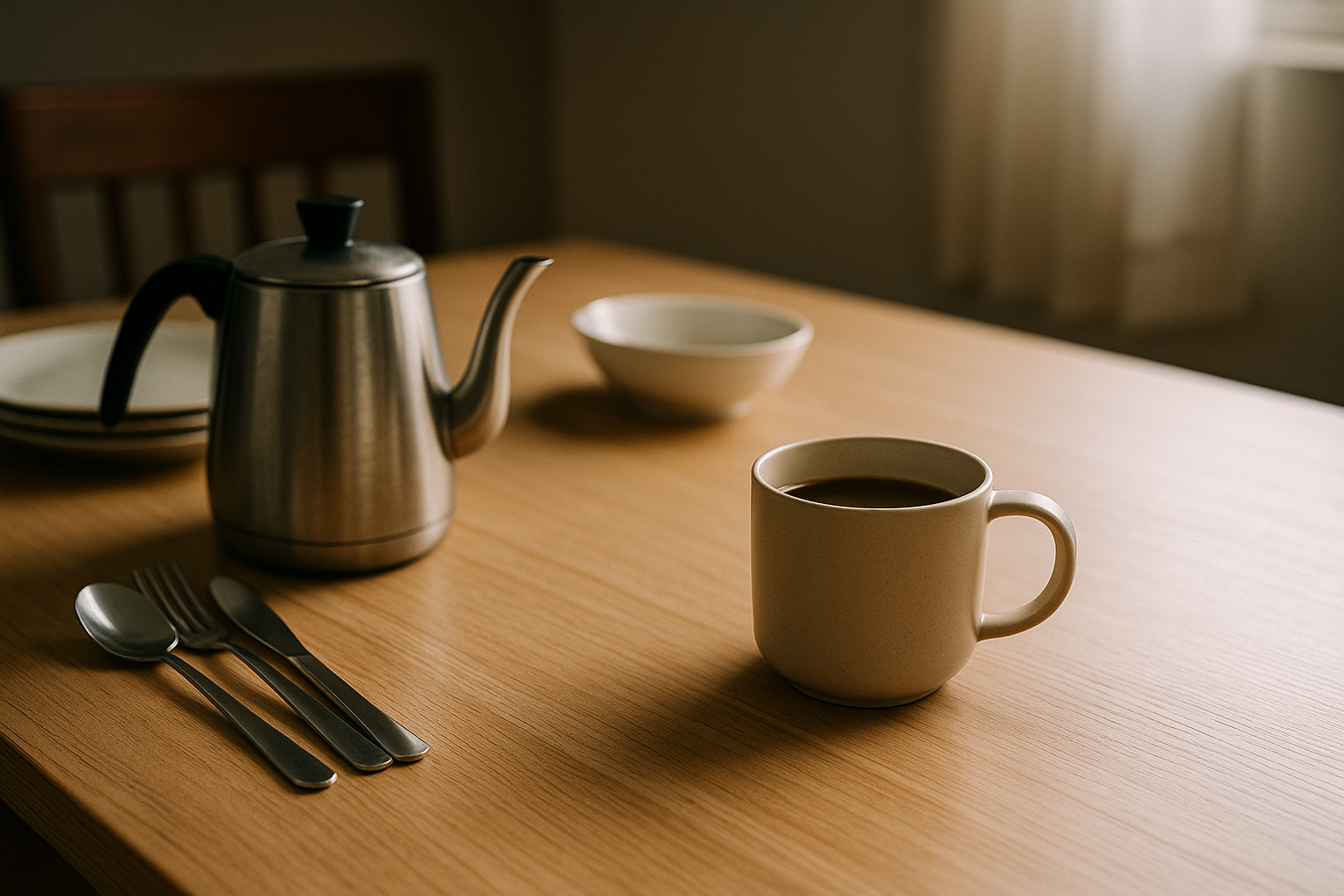 식당의 분주함이 잠시 멎고, 조리대 위의 소음이 잦아들면